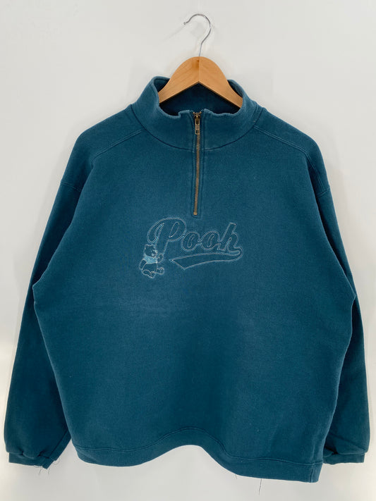 00' DISNEY WINNIE THE POOH Made in USA Size L Vintage Half-zip Sweat-shirt / K3127