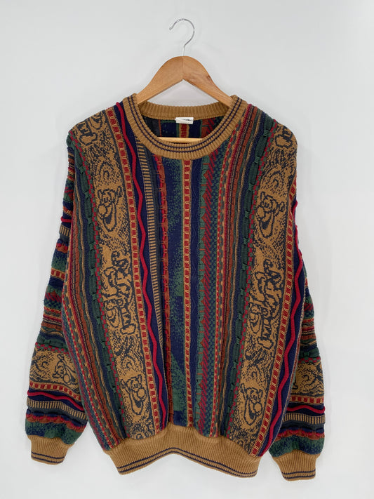 00' DISNEY TIGGER Vintage 3D Coogi-Style Size L Knit Sweater / 9502