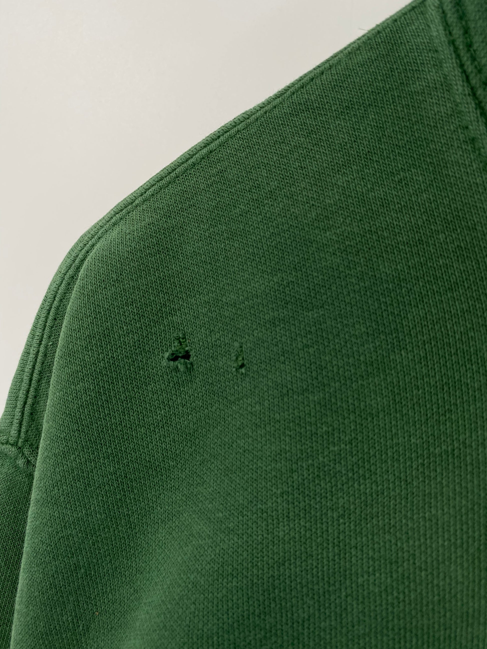 Condition : Damaged (Front Body, Hems and Right Sleeve), Holes(Front Body and Right Sleeve), Stains (Front Body)