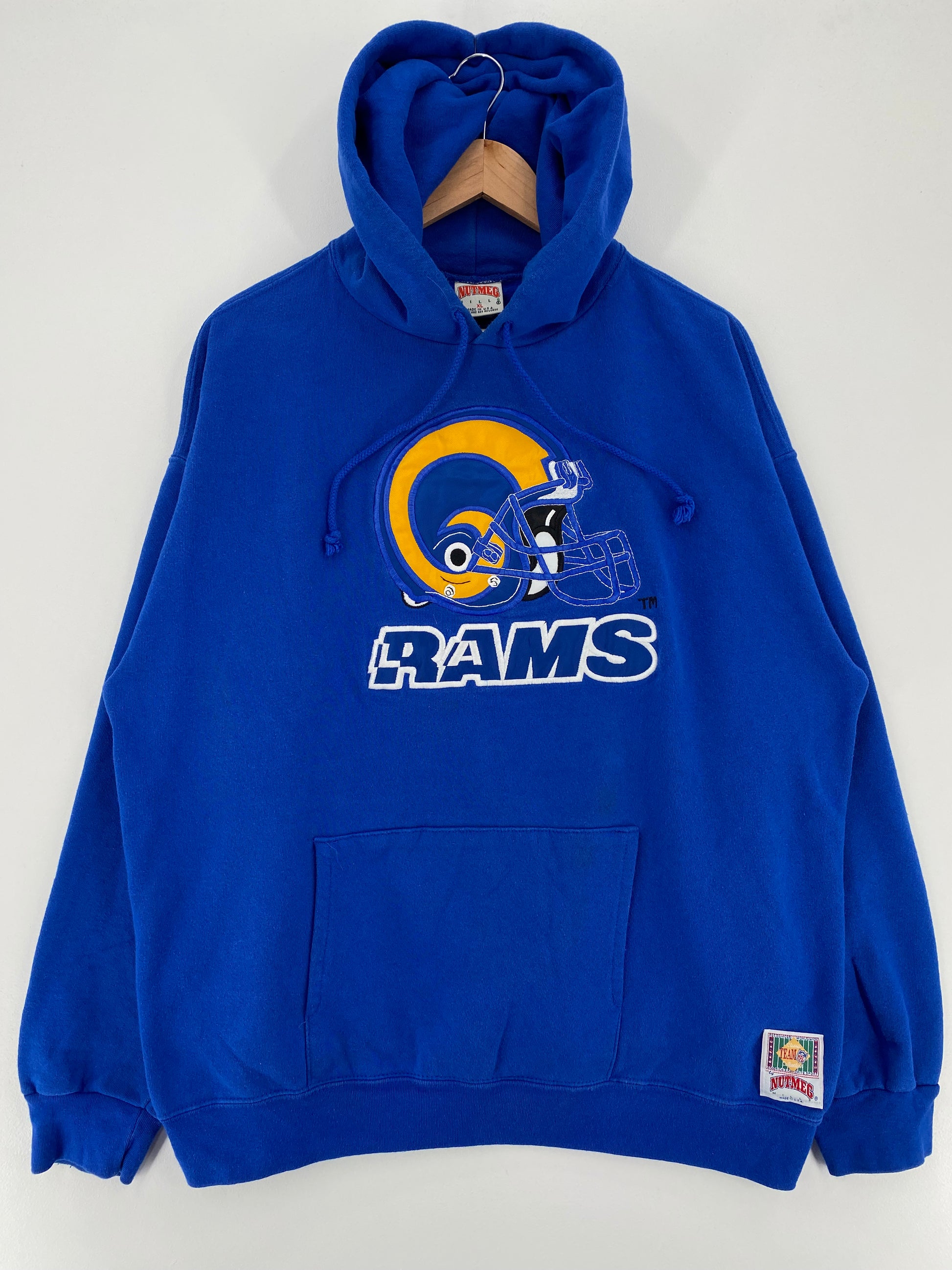 90s LOS ANGELES RAMS Made in USA Size XL Vintage NFL Hoodie Sweat-shirt / A2288