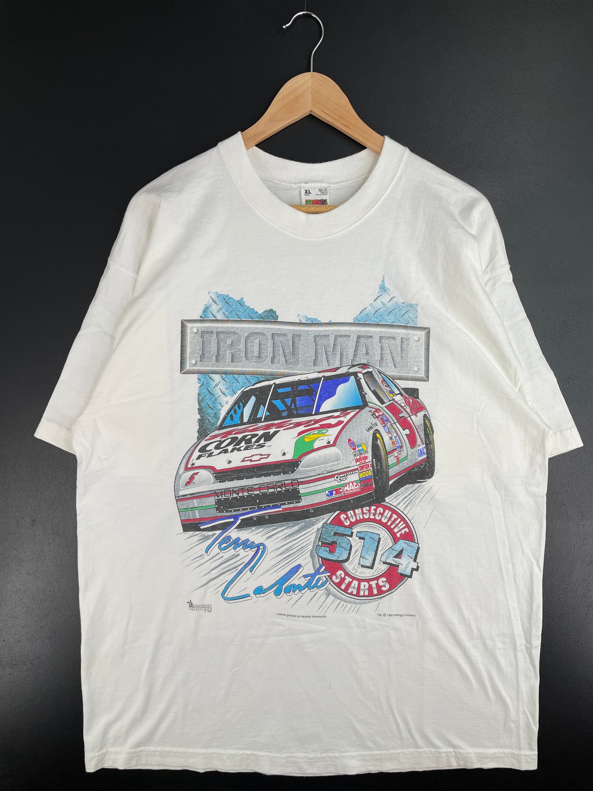 .1996 IRON MAN KELLOGG'S Made in USA Size XL Vintage Racing T-Shirt / E1114