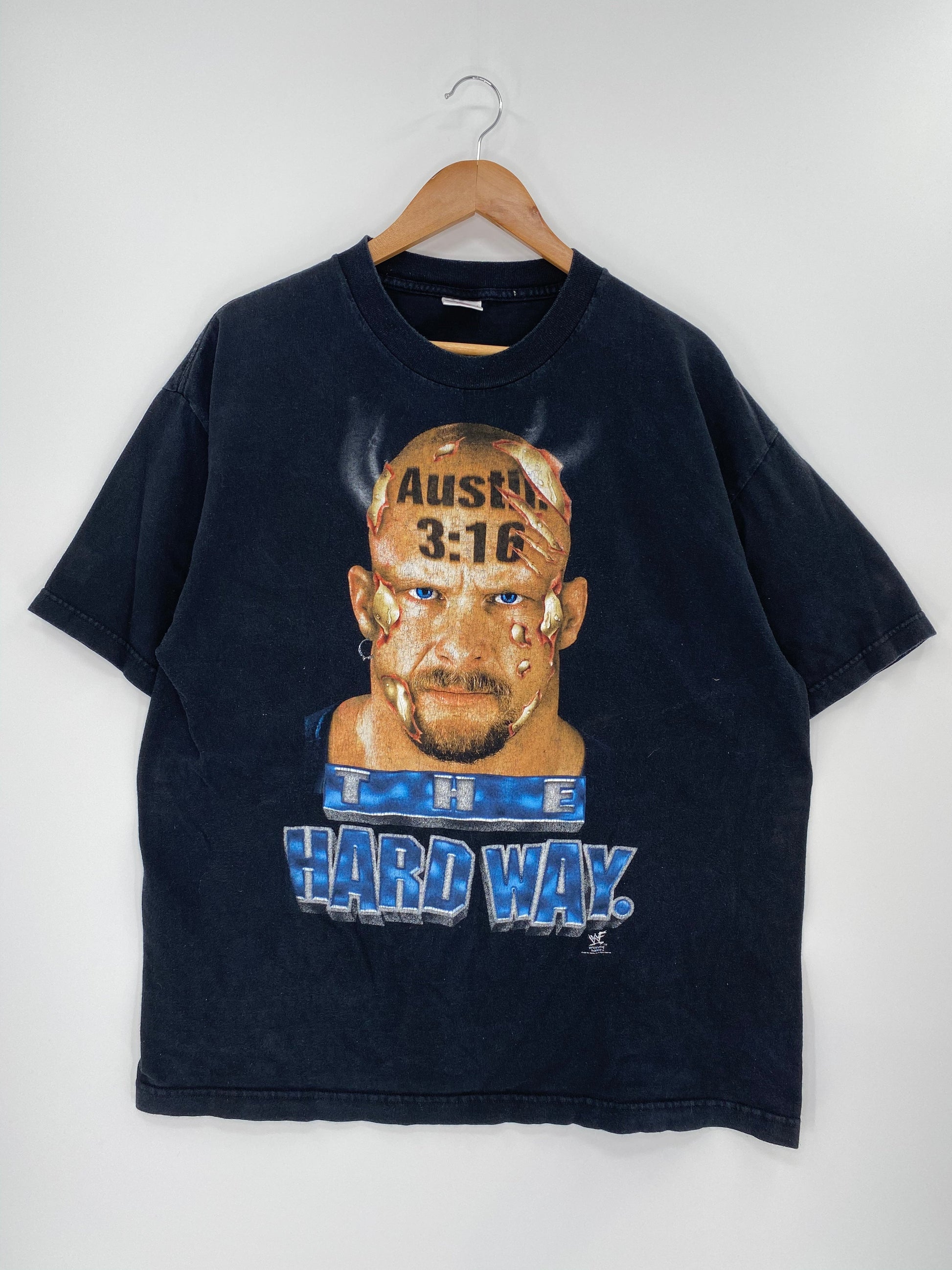 1998 Austin 3:16 THE HARD WAY Size XL Vintage WWF T-shirt / E6917T