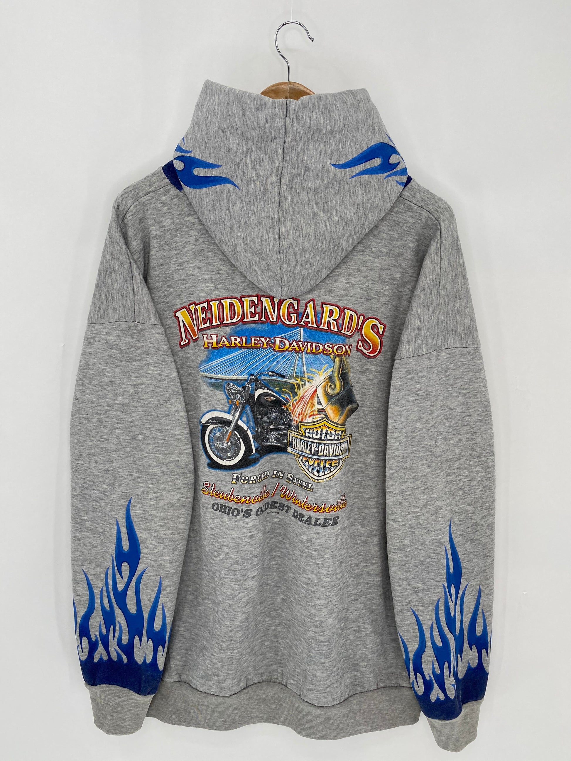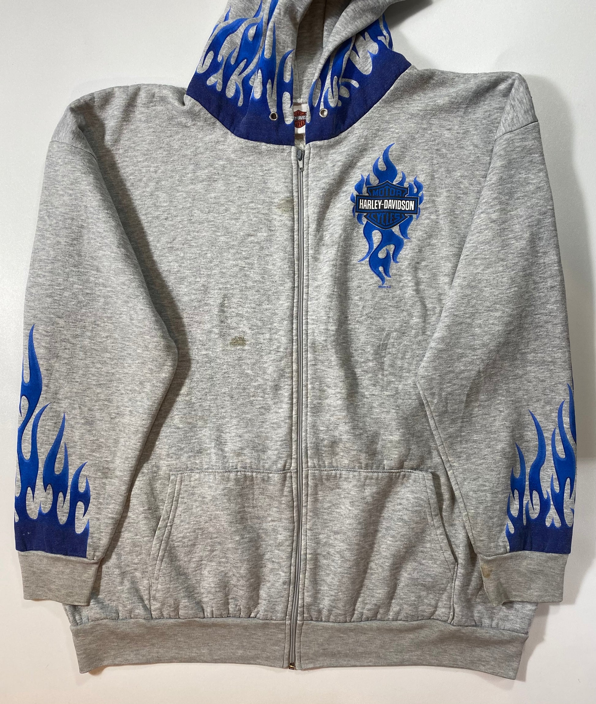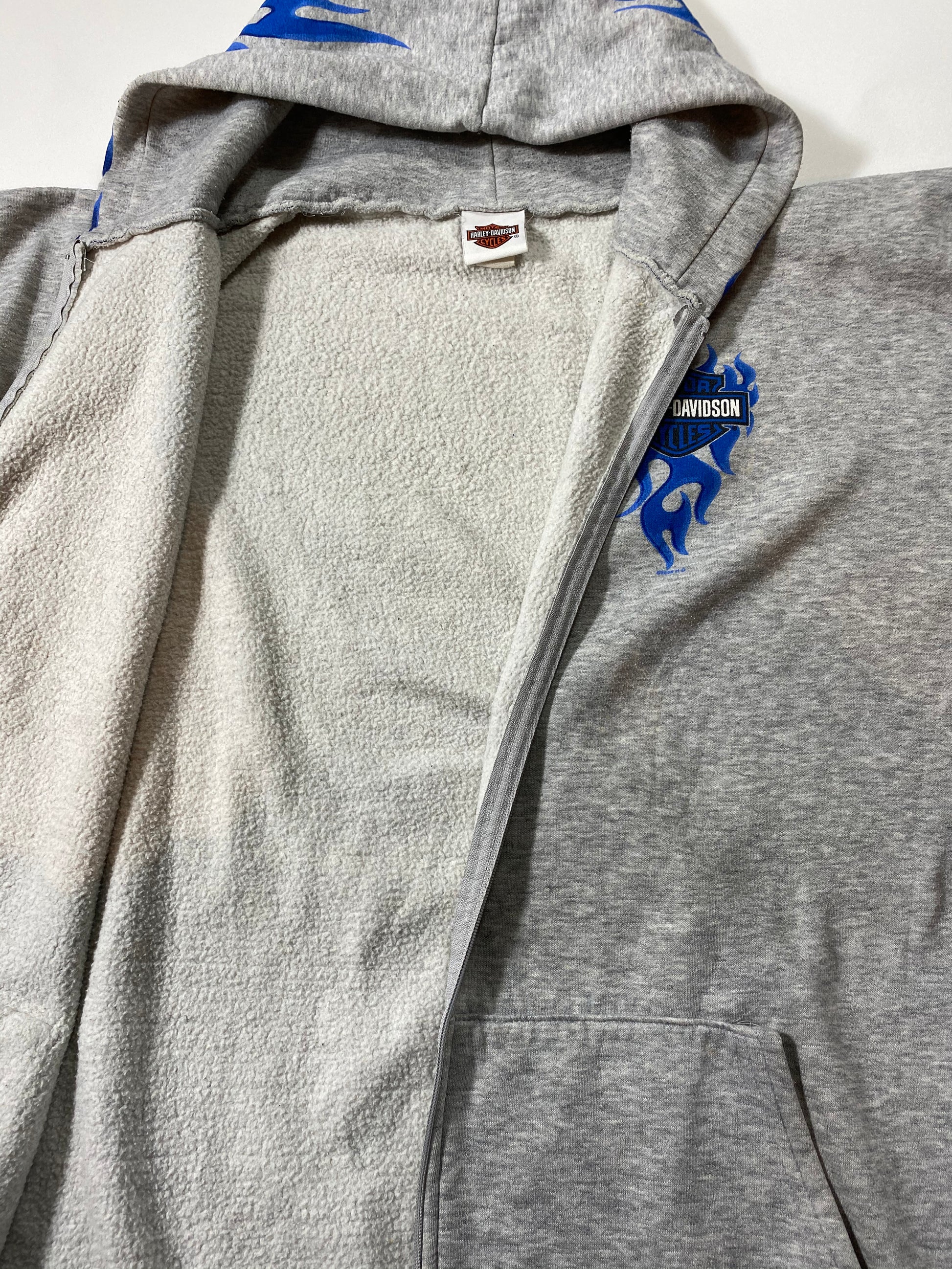 00’ HARLEY DAVIDSON Hand Painted (Fire Pattern) Size Approx. XXL Vintage Hoodie Sweat-shirt / 6539