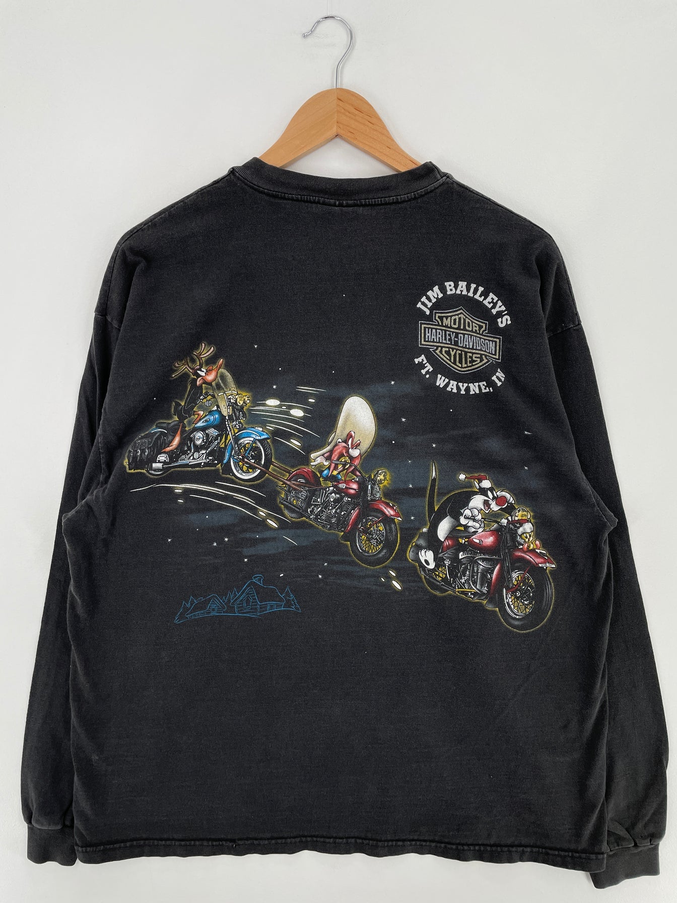 .2000 HARLEY DAVIDSON x LOONEY TUNES CHRISTMAS Made in USA Size XL Vintage Long Sleeve T-shirt / E974