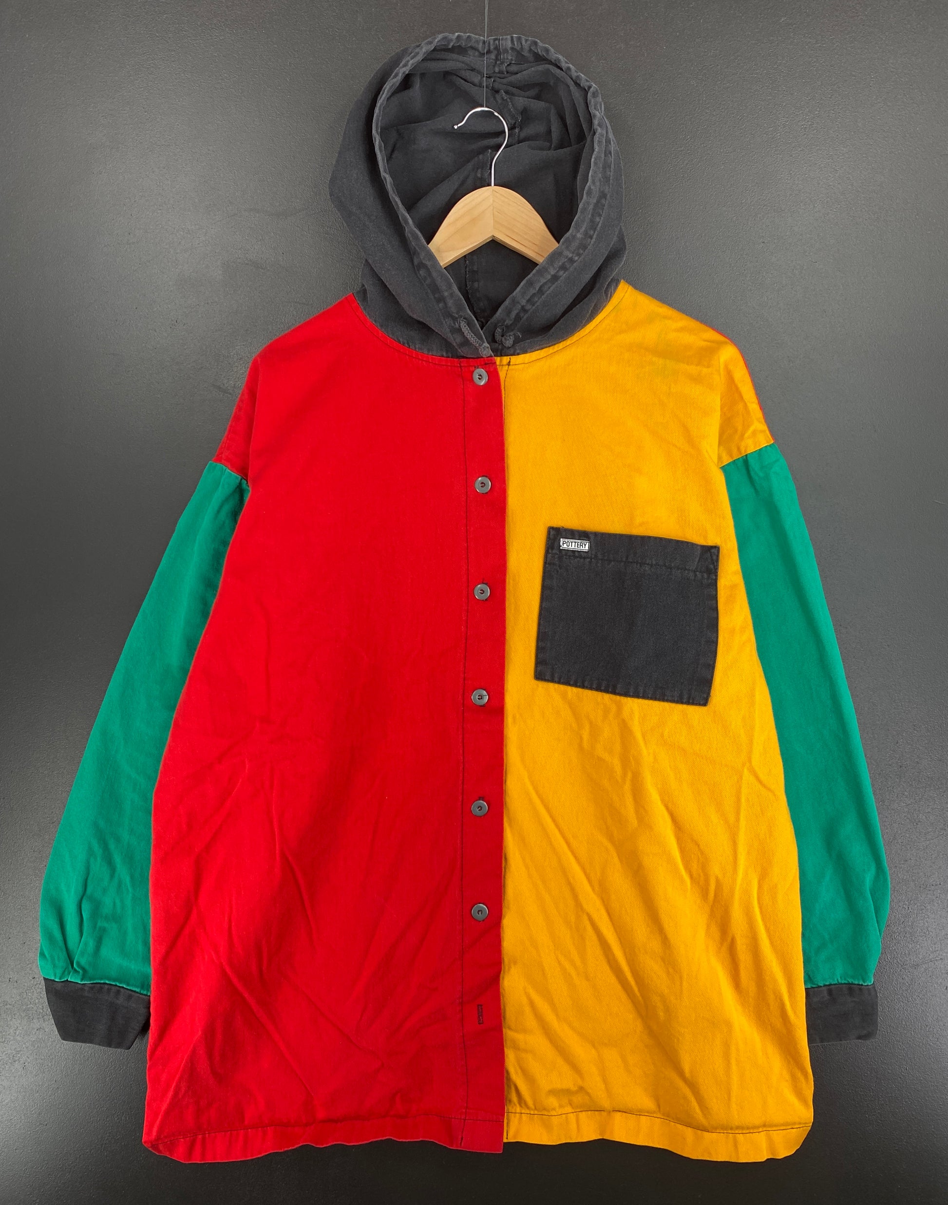 90’s POTTERY Made in USA Size L Vintage Button Down Sweat-Shirt / E3684S