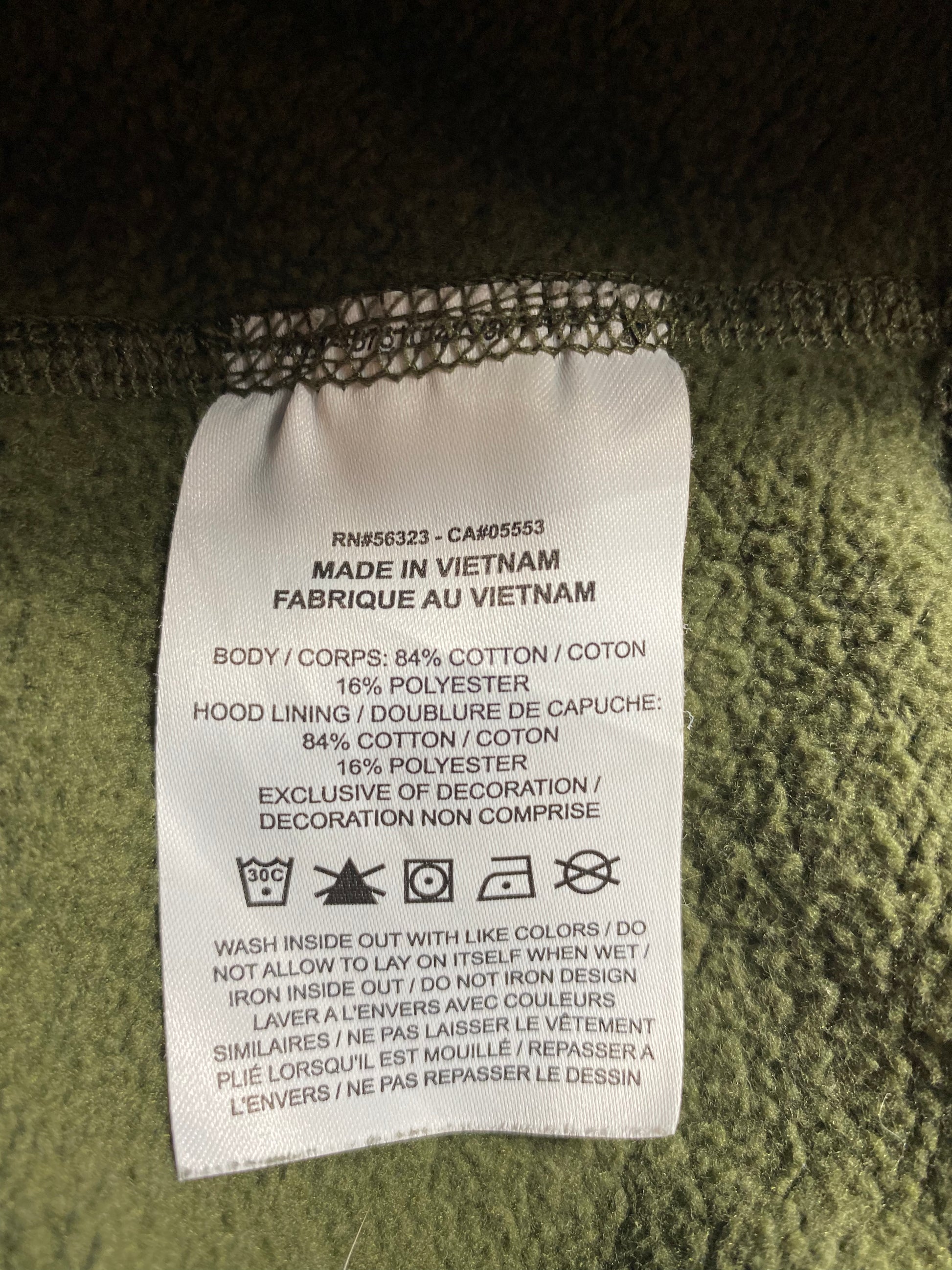 Condition : Stains(Front body and Hoodie) Small holes(Right sleeve)