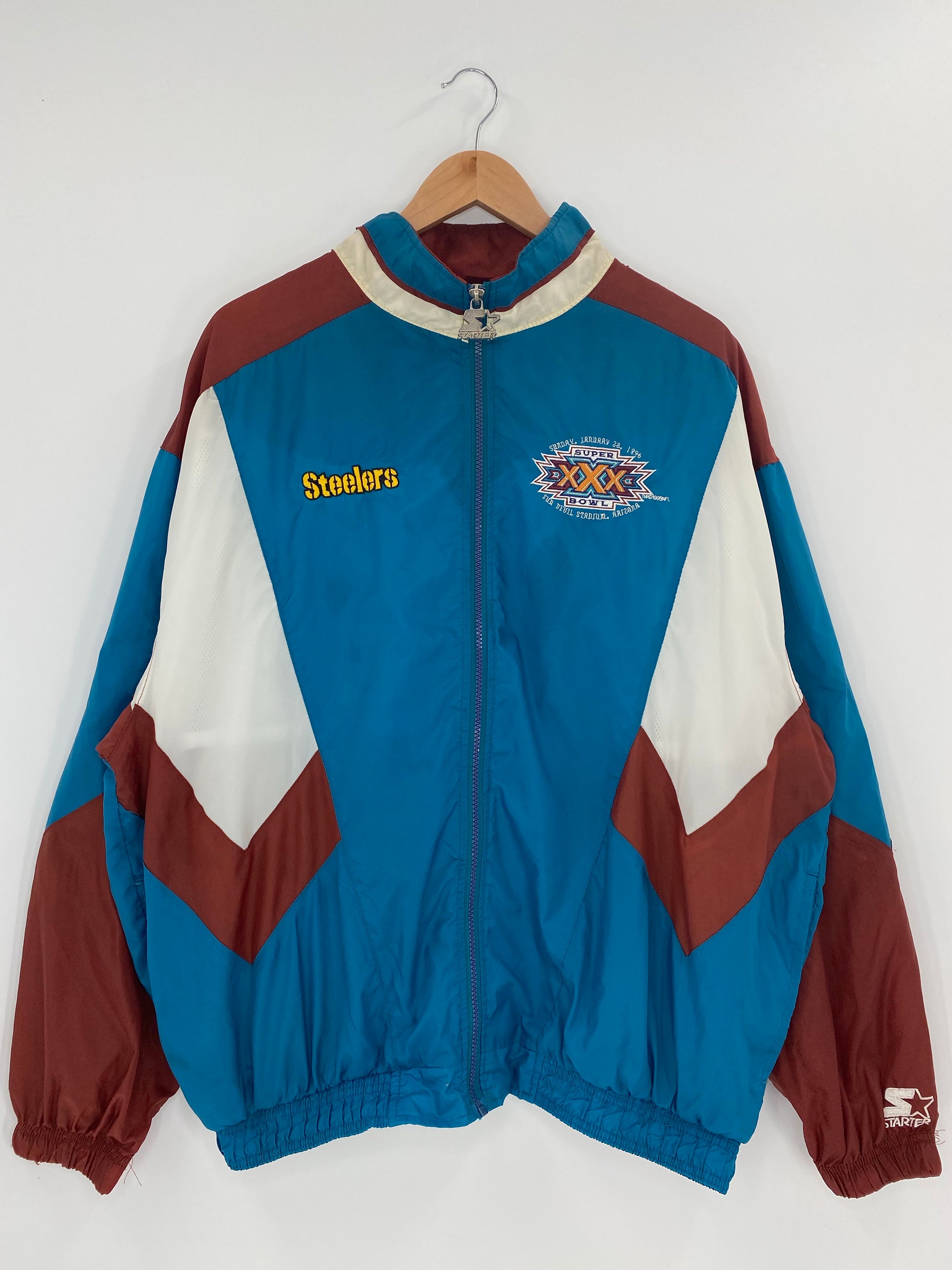 90's STARTER STEELERSxSUPER BOWL Size XL Vintage Zip-up Nylon Jacket / K4718