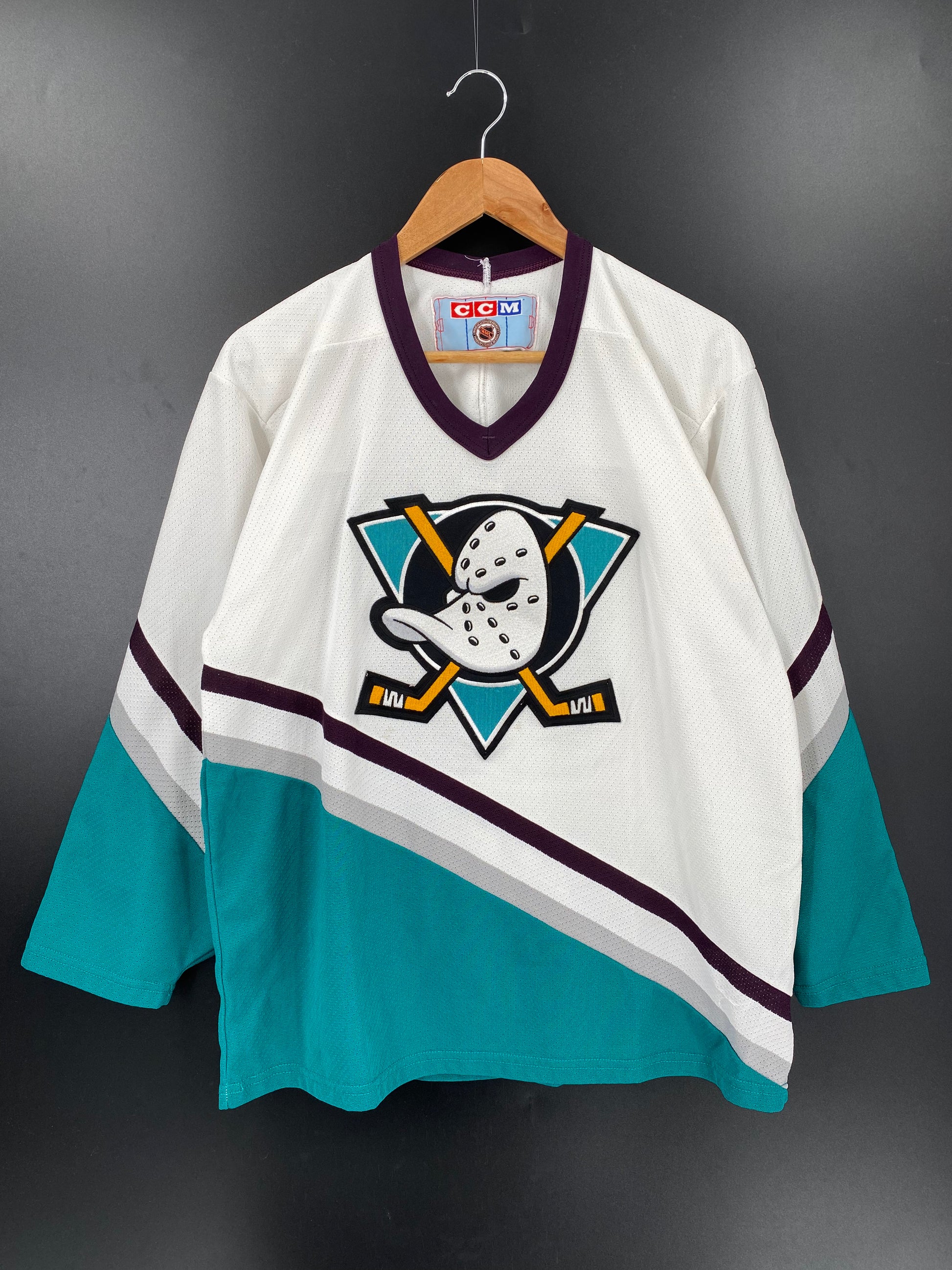 VINTAGE DISNEY MIGHTY DUCKS Size M NHL UNIFORM JERSEY / K2154