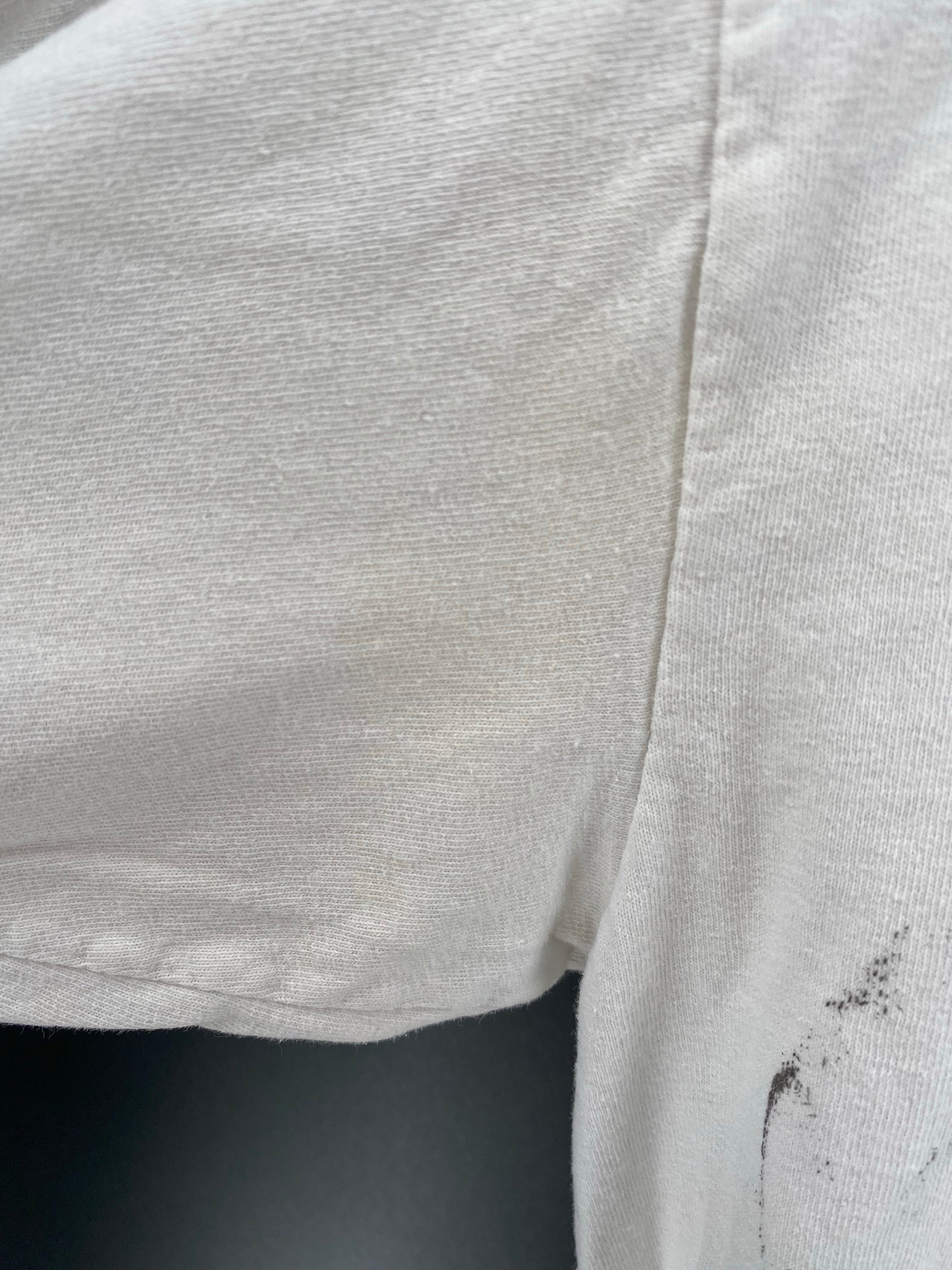 Condition : Stains (Front and back body, Sleeves) Hole (Back body)