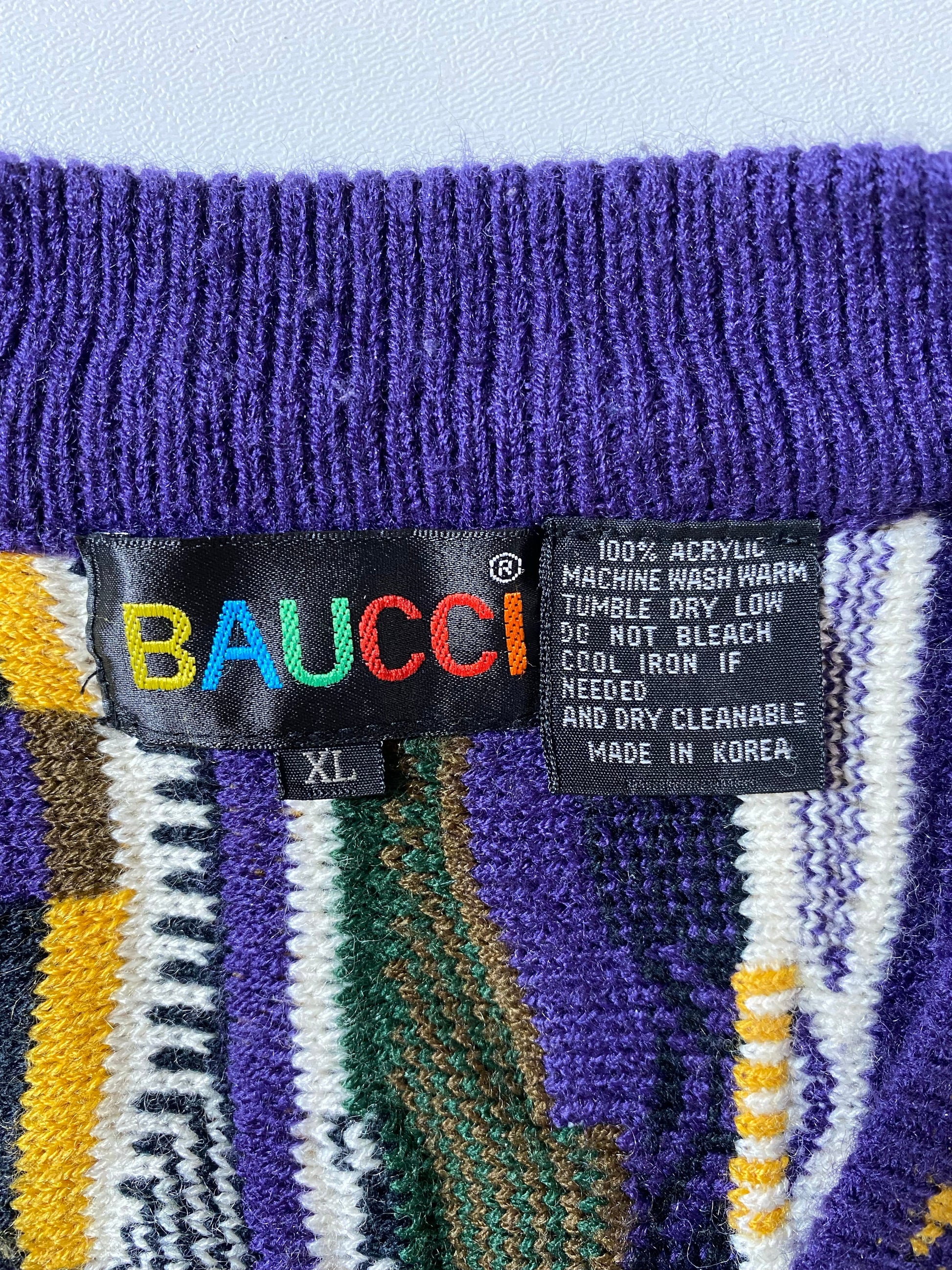 Vintage 3D COOGI- Style Size XL Button Down Knit Sweater Vest / A9876