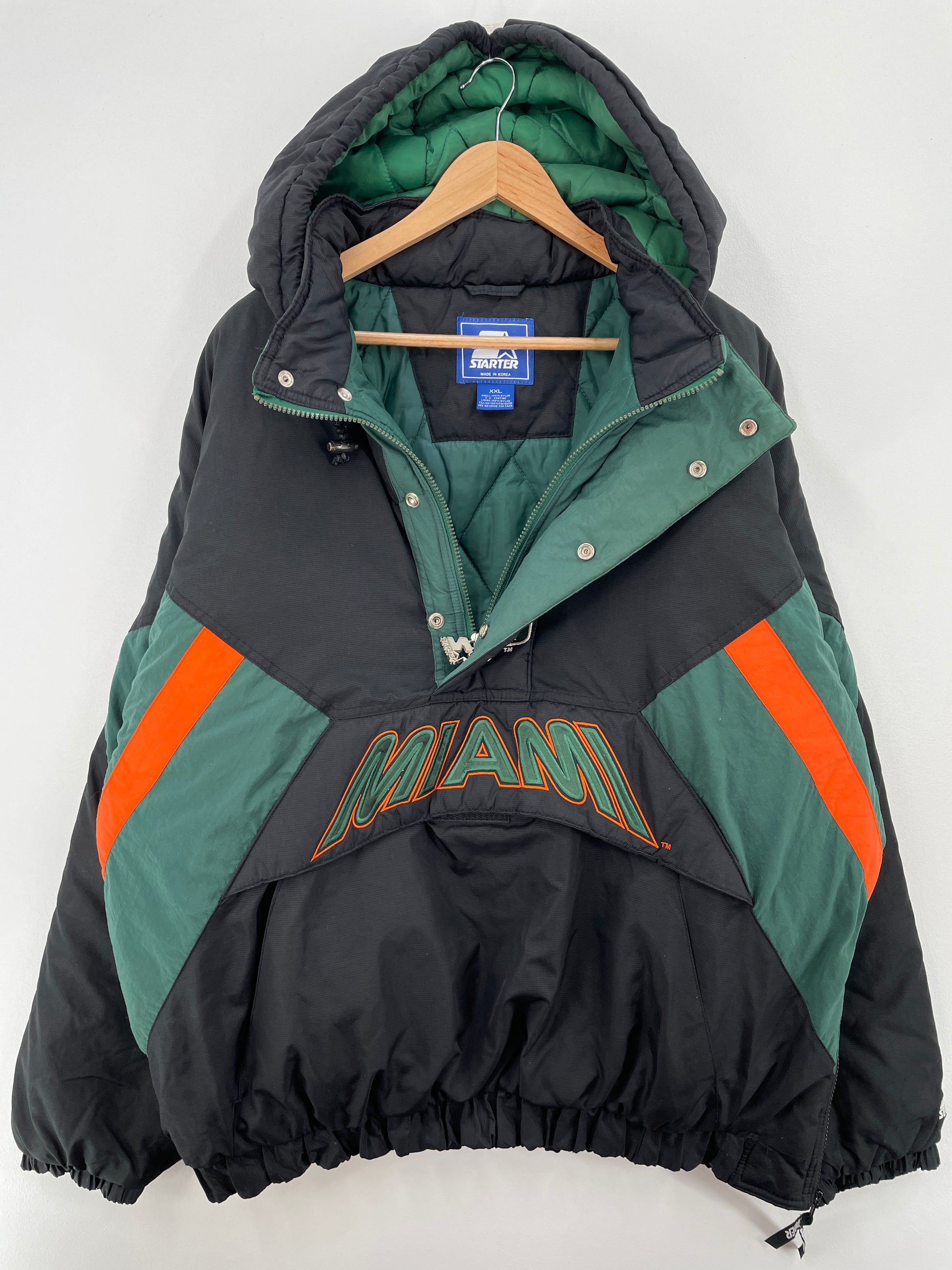 90’s STARTER x MIAMI HURRICANES Size XXL College Padded Nylon Jacket / A8275
