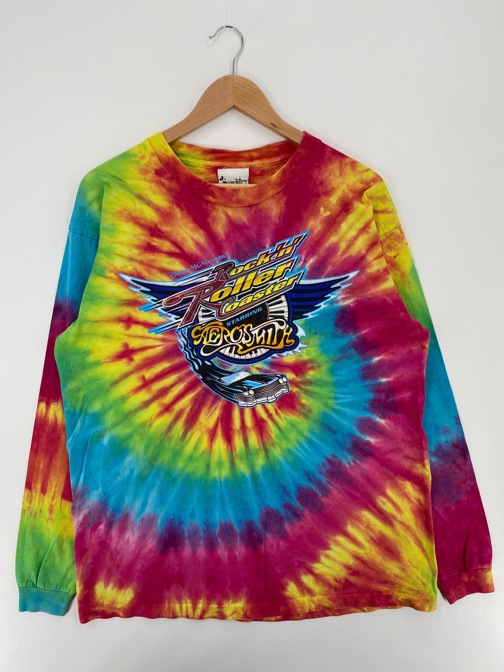 00' DISNEY x AERO SMITH ROCK'N' ROLLER COASTER Tie Dye Size XL Vintage Long Sleeve T- Shirt / A1812
