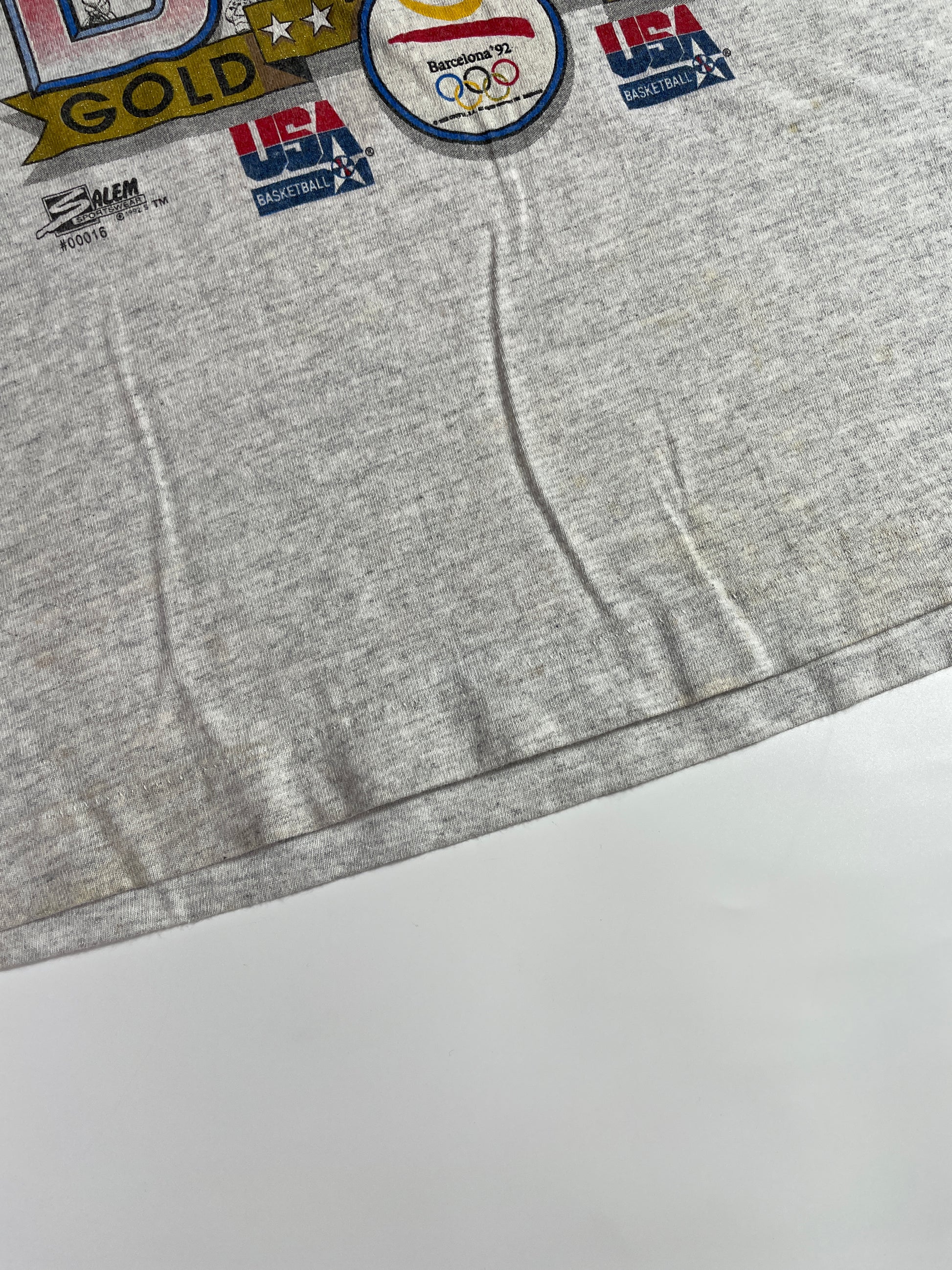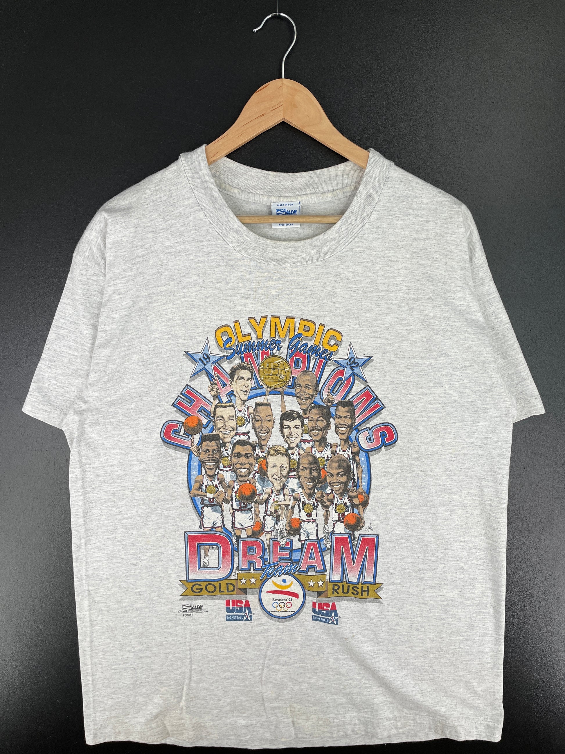 1992 SALEM x OLYMPIC CHAMPION DREAM Made in USA Size XL Vintage NBA T-Shirt / A4484