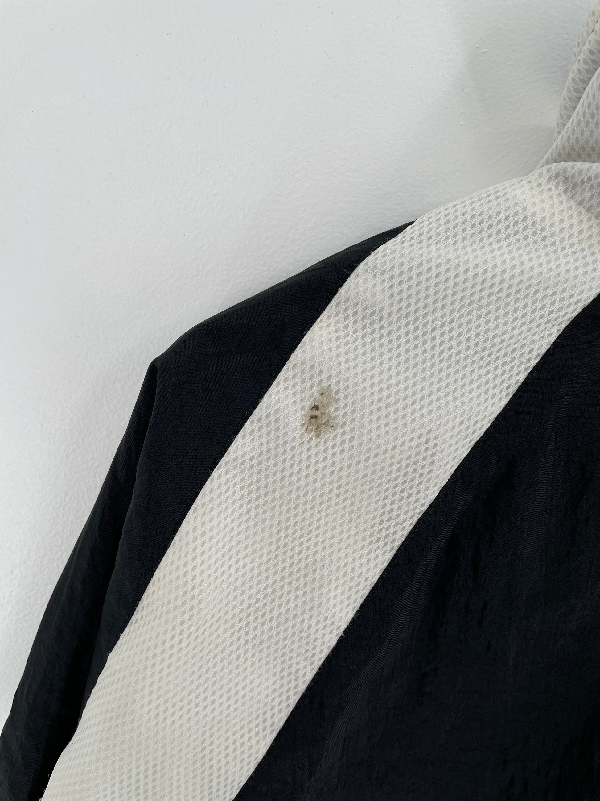 Condition : Stains (Back body), Damaged (Zipper), Holes (Right sleeve)