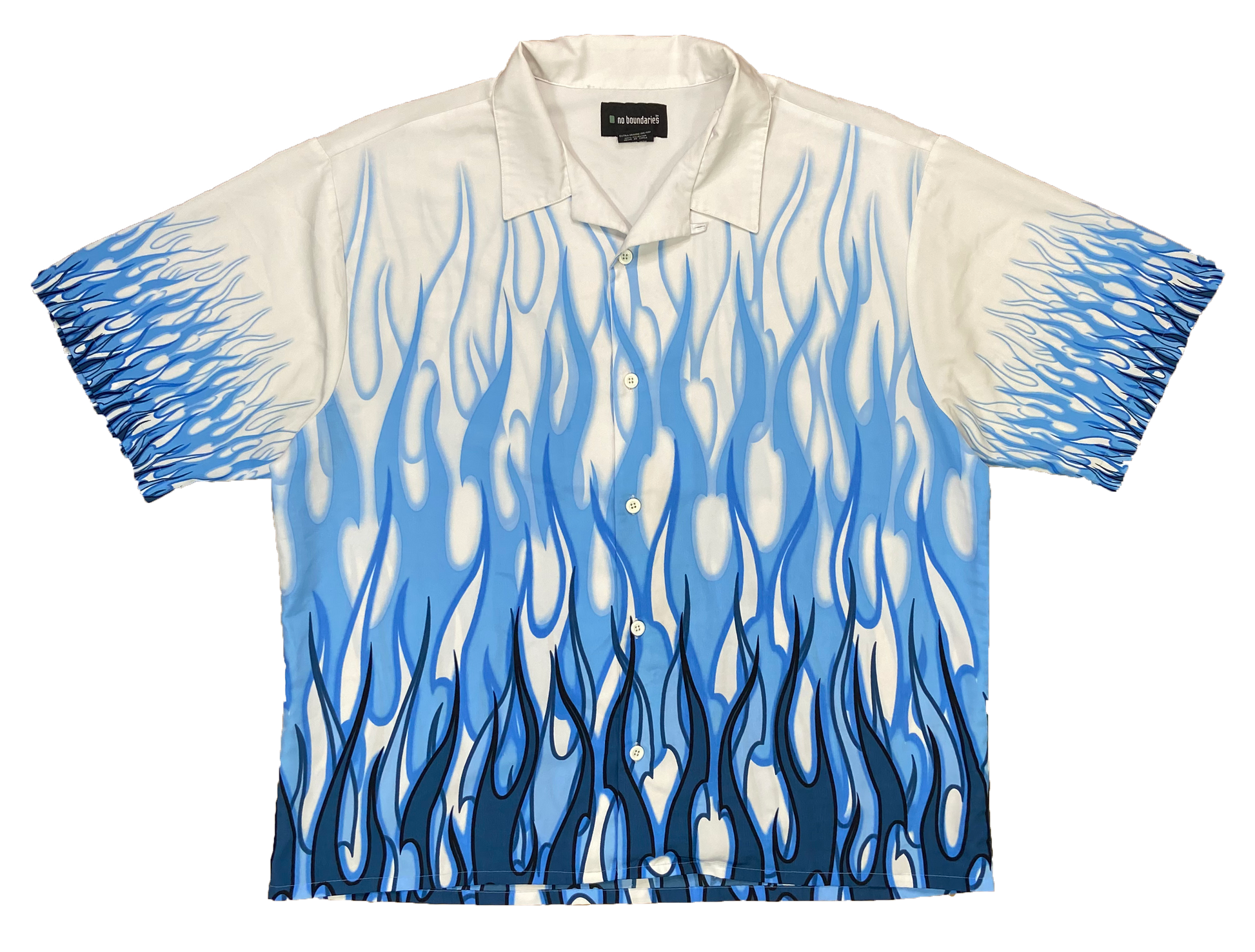 Vintage Fire Pattern Print Short Sleeve Button Down Shirt / 2787