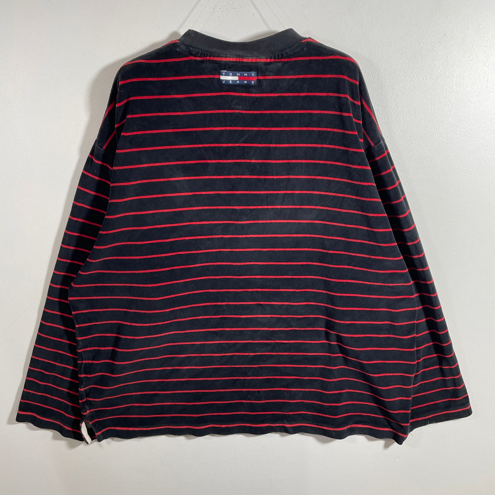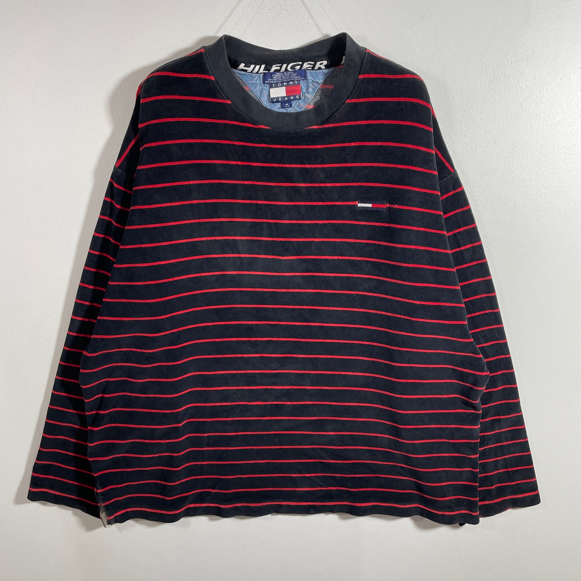 (M) 90’s TOMMY JEANS Striped Velour Long Sleeve T-shirt / A1325T